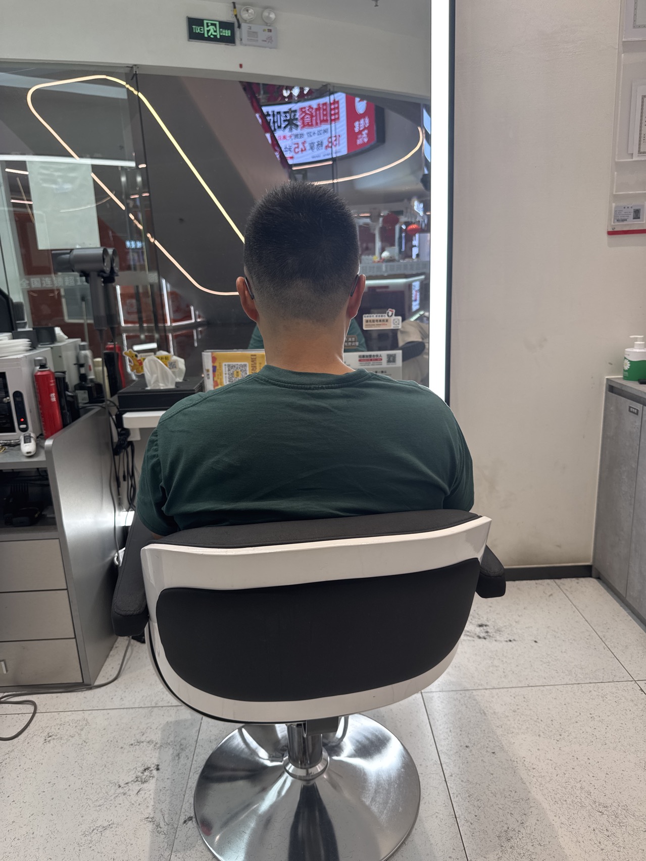 附上几张理发时拍的照片,从背后看确实头小了很多,开心。